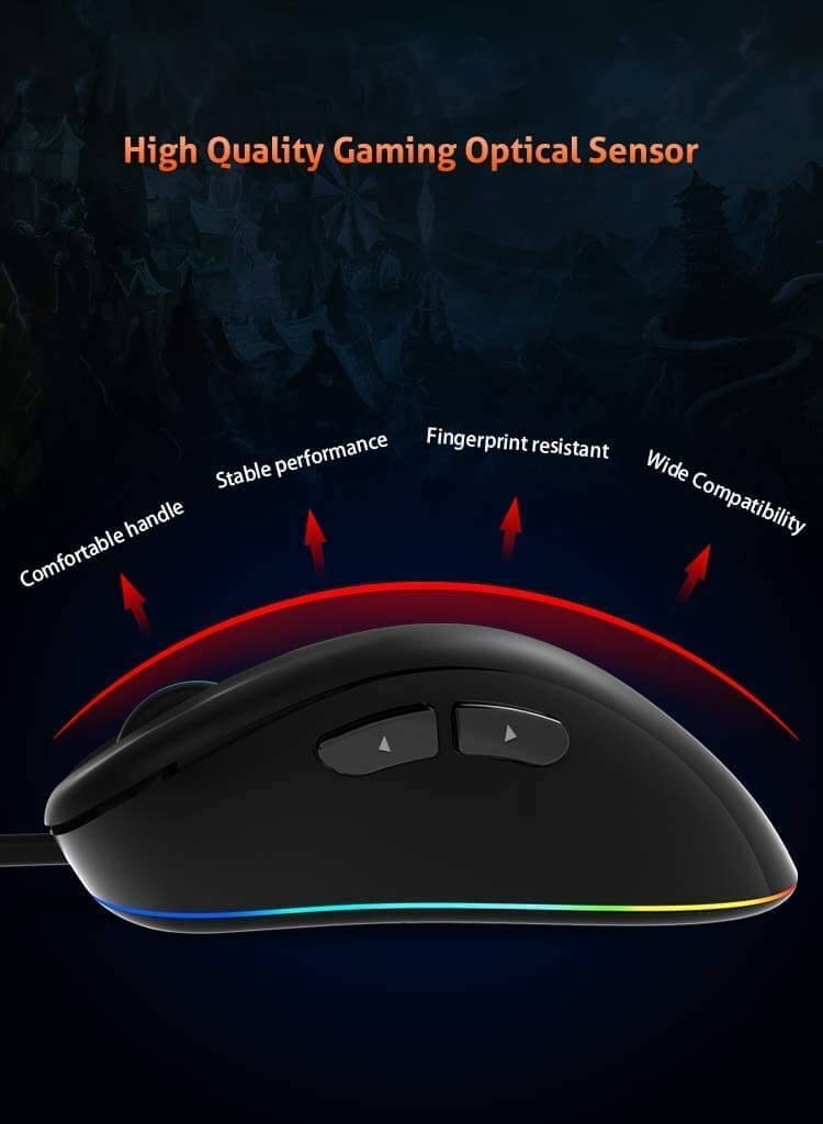 ◆ تصميم خاص لألعاب الرياضات الإلكترونية الاحترافية. ◆ سطح بلوري ، مواد عالية الجودة ، قبضة مثالية ، استرخاء يدك. ◆ عجلة تمرير مطاطية ناعمة ، لفة بسلاسة. ◆ يمكن تخصيص ضوء RGB. ◆ متانة قوية ، تم اختبارها أكثر من 5 ملايين ضغطة مفتاح. ◆ مستشعر بصري للألعاب عالي الجودة ، وتحديد المواقع بدقة. ◆ مقبض مريح ، أداء مستقر ، مقاوم لبصمات الأصابع ، توافق واسع.