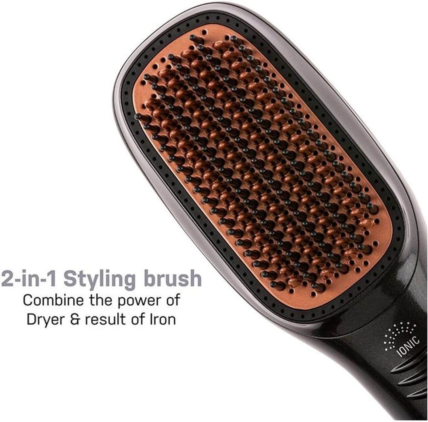 2-in-1 Hot Air Brush - Ionic Hair Dryer and Straightener Comb with Adjustable Temperature - Hair Dryer Brush for Volume, Curls, and Smooth Styling - Lightweight, Frizz-Free, for All Hair Types